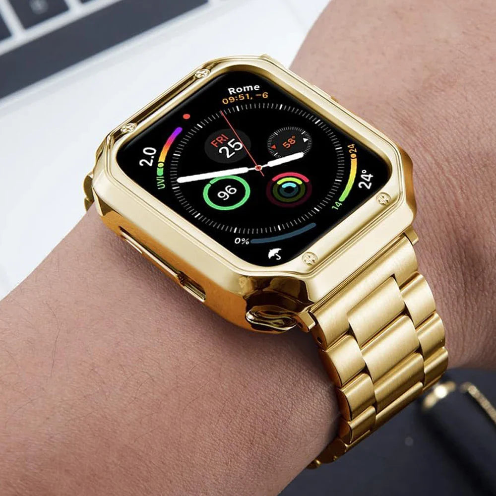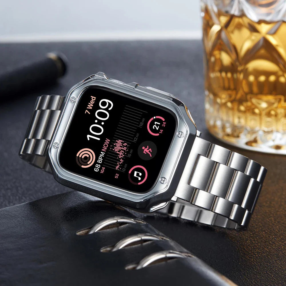 Crafted with a durable stainless steel band,the Aurora Apple Watch Band adds a touch of luxury while seamlessly integrating with your Apple Watches high-tech features.