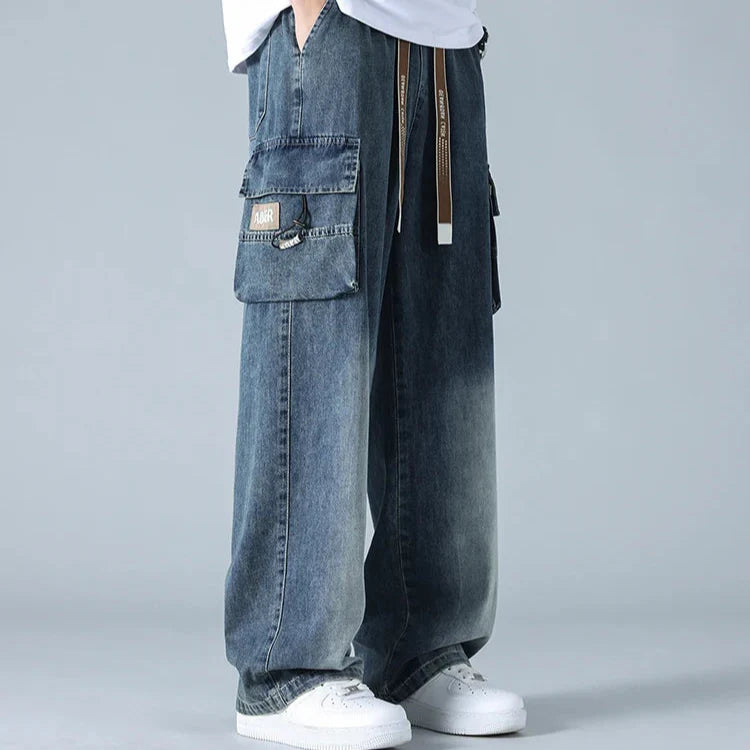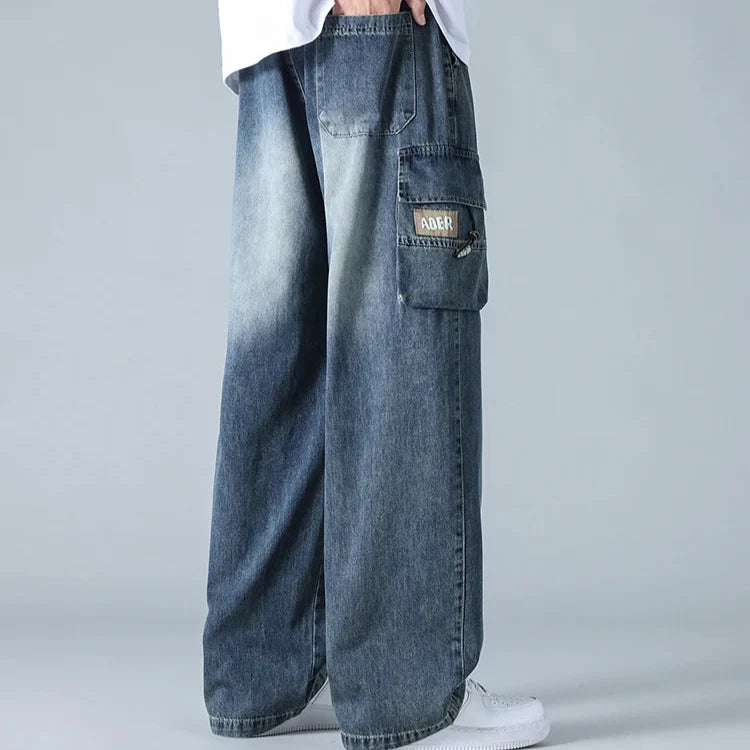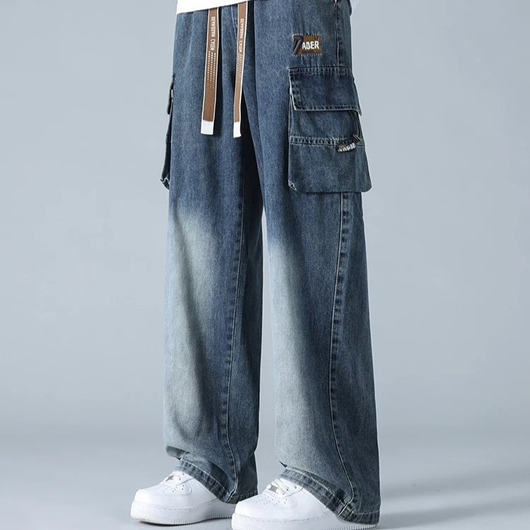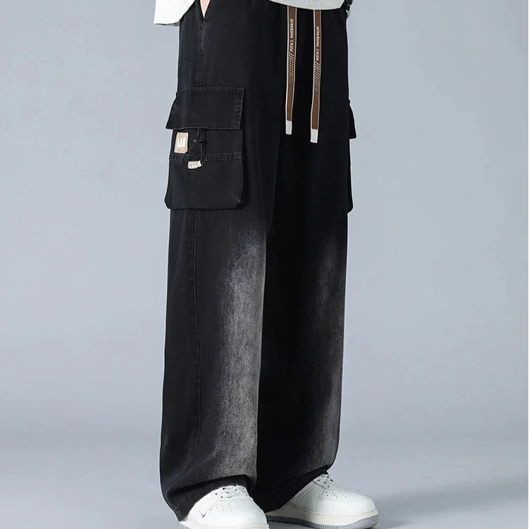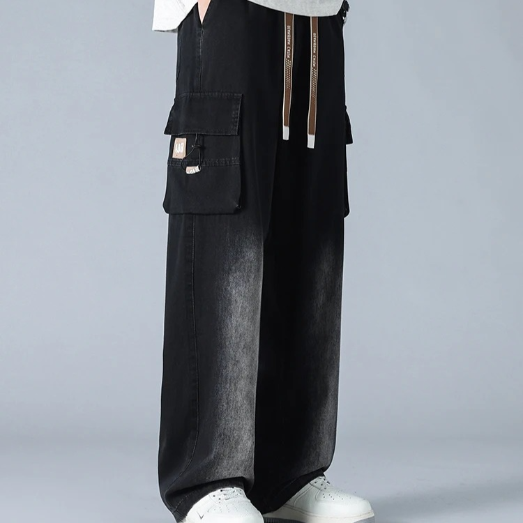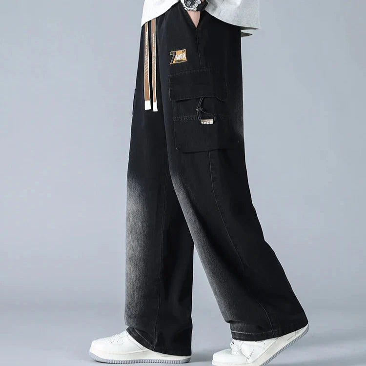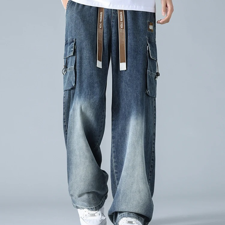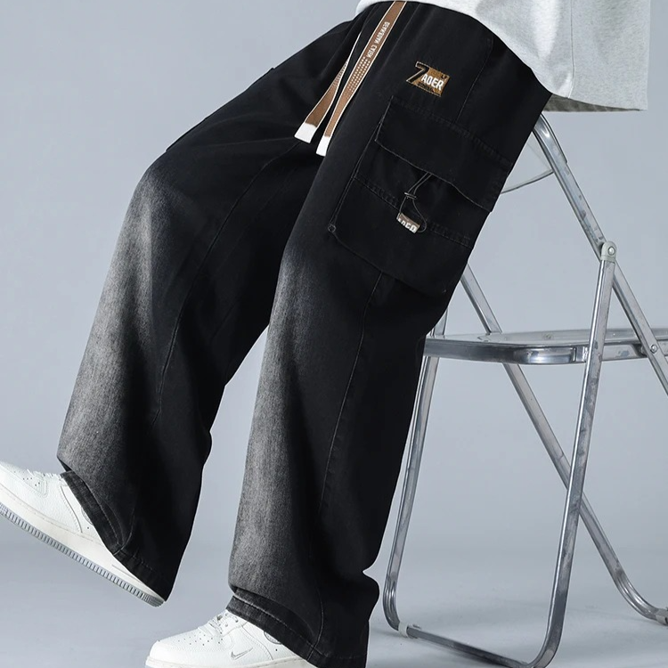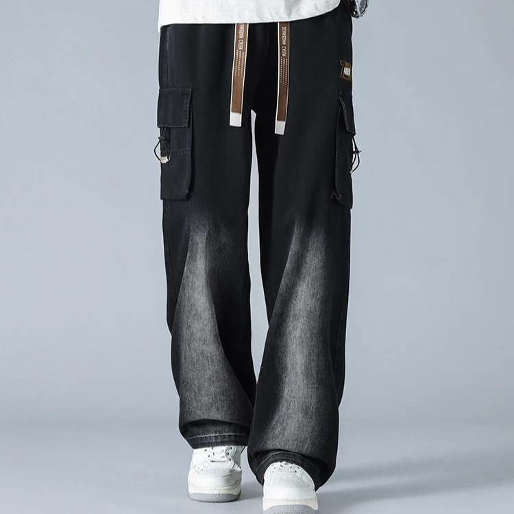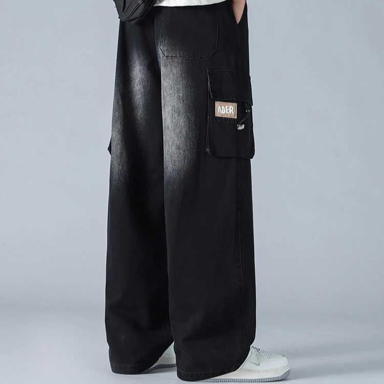 Engineered for style and movement , these gradient cargo jeans feature a bold wide-leg cut, multi-layered utility pockets, and a distinctive knee fade that adds depth and contrast. The heavy-duty denim is softened for comfort, while the oversized fit and taper-resistant structure give them a confident, off-duty silhouette.
