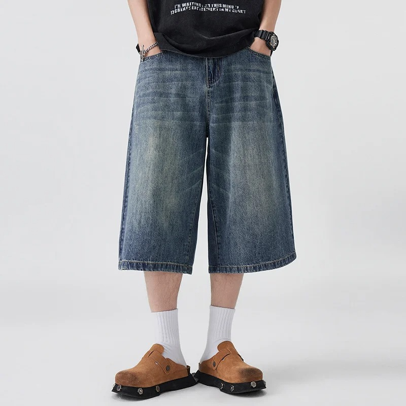 These oversized denim shorts blur the line between vintage skatewear and modern fashion. With exaggerated volume and a lived-in wash, they deliver bold structure without sacrificing everyday comfort.