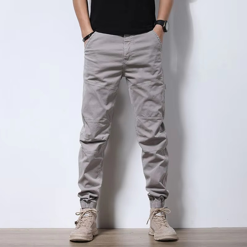 Built for everyday movement with a rugged edge, these utility jogger pants combine vintage workwear construction with modern comfort. Reinforced knee panels, elastic cuffs, and a midweight cotton-twill fabric make them equally at home in the workshop or the weekend lineup.