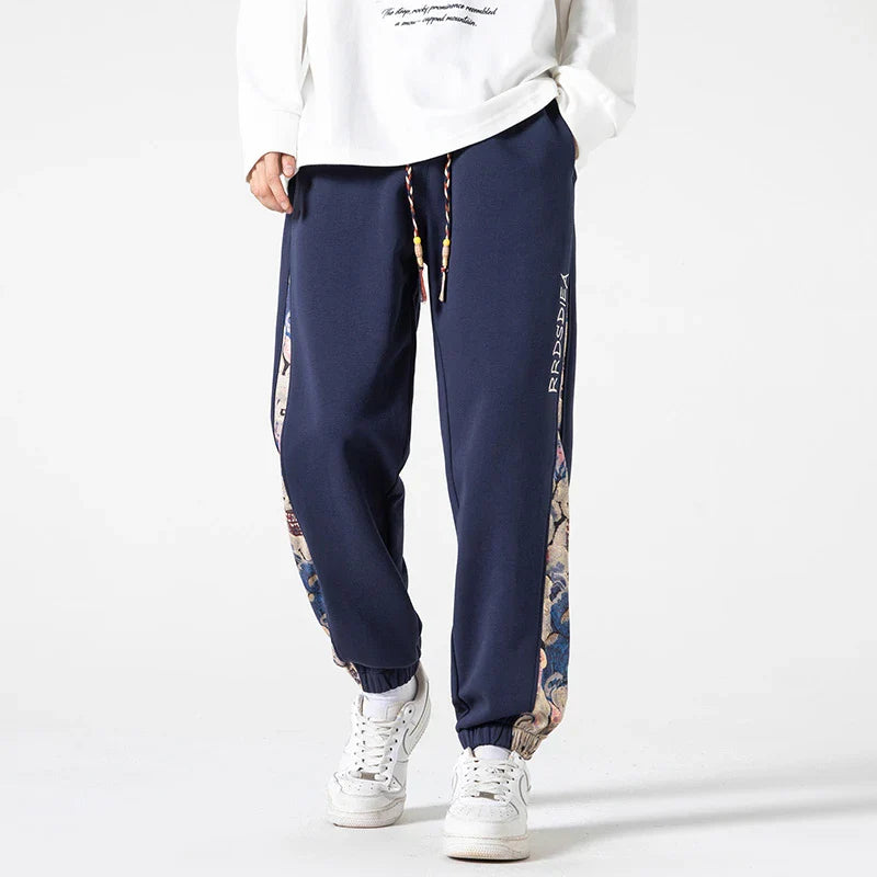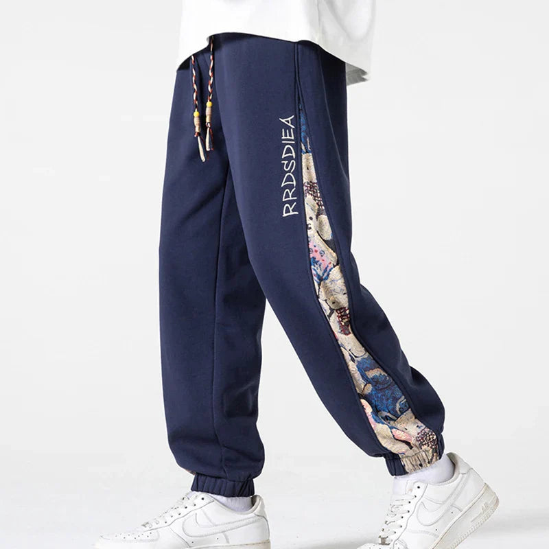 Streetwear meets tradition in these ultra-comfy joggers. Featuring intricate side panels, bold embroidery, and a relaxed fit, they’re perfect for effortless style on the go.