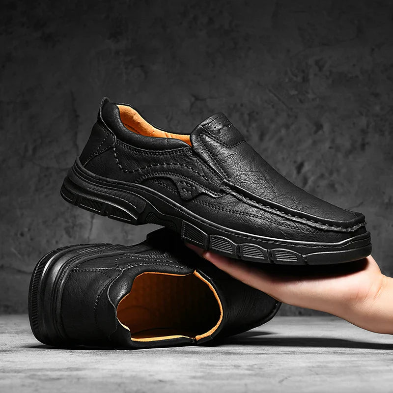 Step into everyday luxury with these sleek leather slip-ons—crafted for effortless style and all-day comfort. Designed with a supple leather upper and cushioned interior, they blend modern styling with supportive wearability.