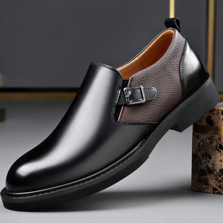 Sleek, sculpted, and smartly refined—these dual-texture monk loafers combine full-grain leather with pebbled side panels for a modern update on a timeless silhouette. The side buckle accent not only adds visual flair but speaks to a quiet confidence built on craftsmanship and comfort.