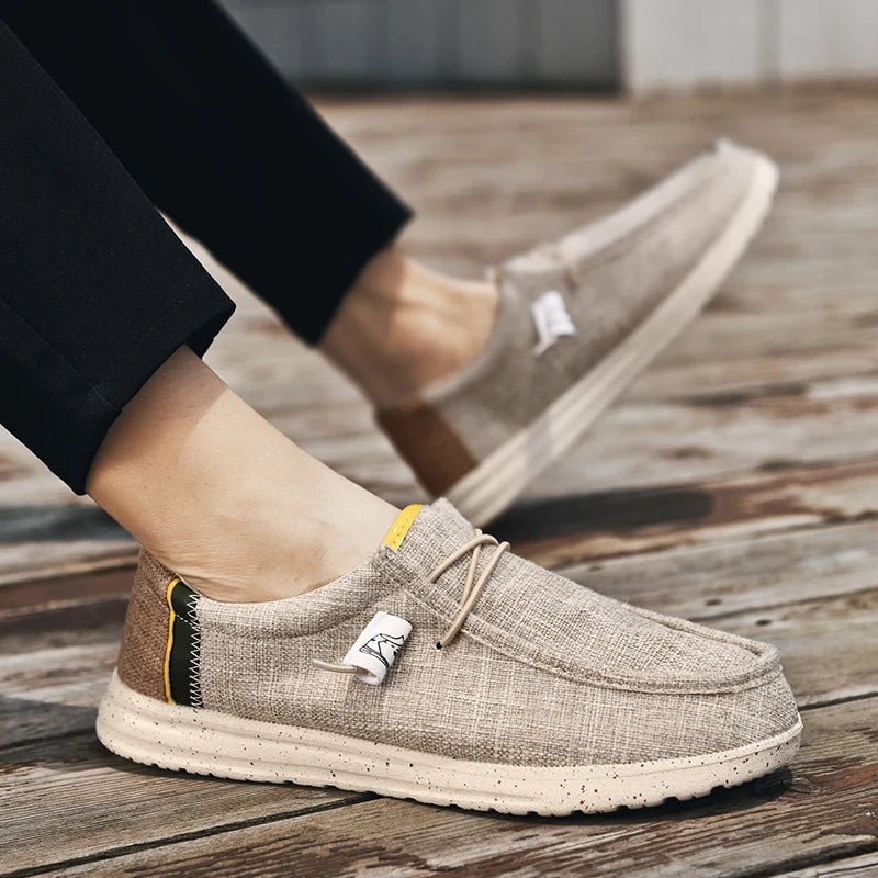 Slip into comfort with these relaxed canvas slip-ons, perfect for everyday wear. The airy upper pairs with a soft cork insole and ultra-light sole for a barely-there feel. Elastic laces add just the right touch of ease and security.