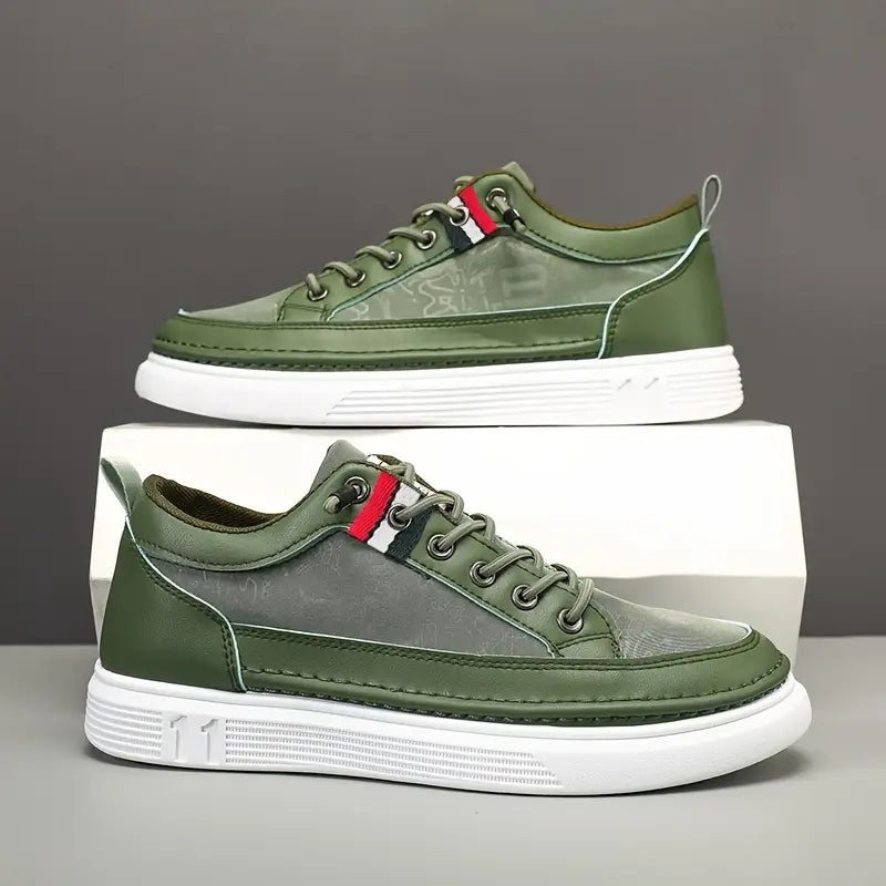 Step up your style—literally.  Crafted with a sleek blend of breathable mesh and premium vegan leather, they offer a subtle lift with a hidden platform sole—perfect for boosting your height without compromising comfort.