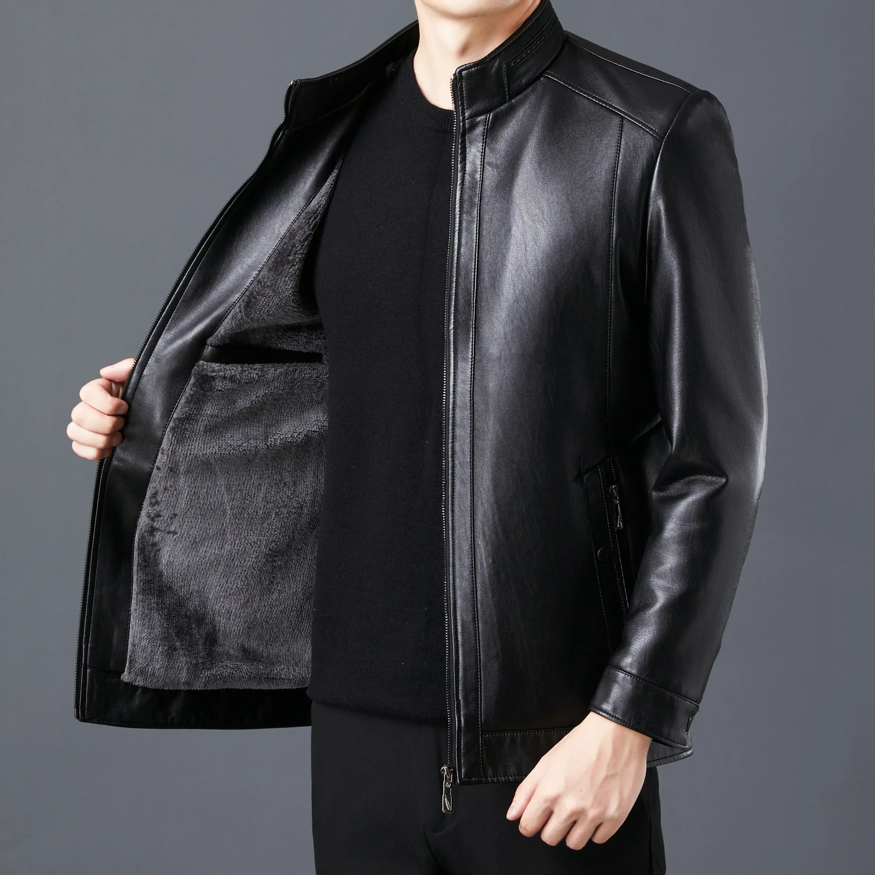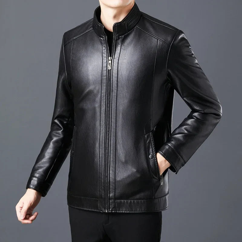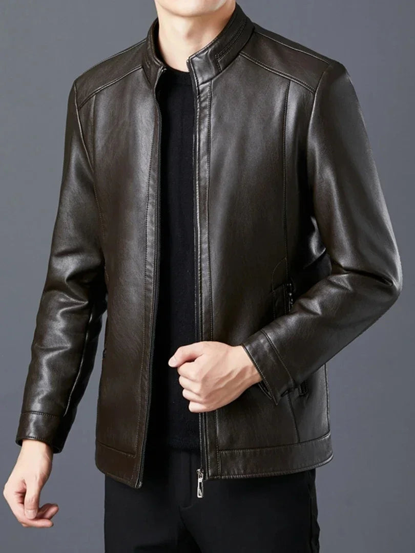 Sleek, warm, and effortlessly cool, this faux leather jacket combines modern style with plush inner lining for ultimate comfort. Designed for versatility, it keeps you looking sharp while providing insulation for colder days.