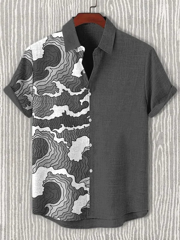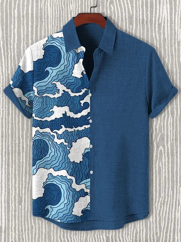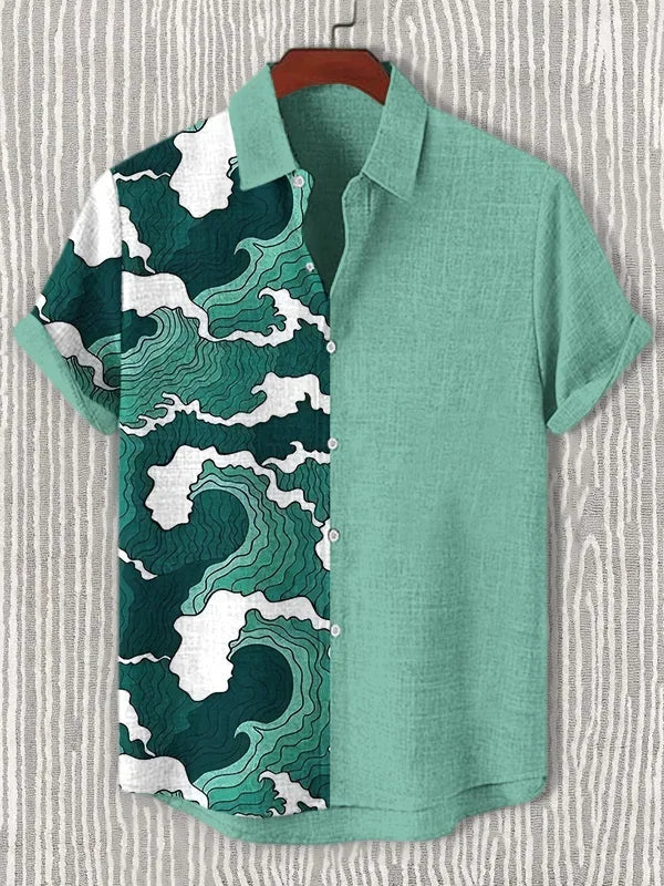 Make waves this summer in our Japanese Linen Shirt—where minimalist form meets bold, artistic flair. Crafted from breathable Japanese linen, it features a striking ocean-wave print that flows effortlessly into a clean, solid color block, blending comfort with head-turning design.