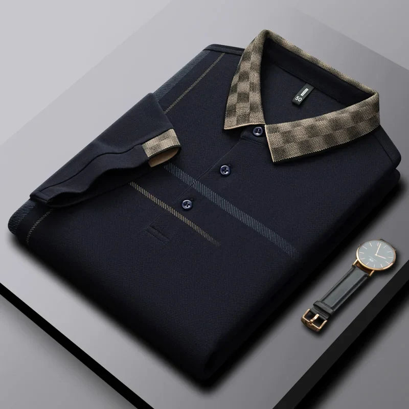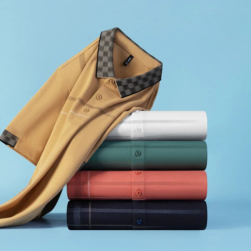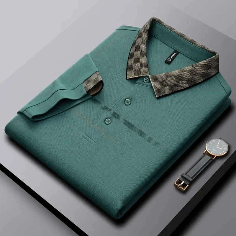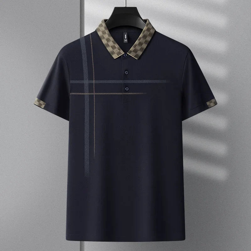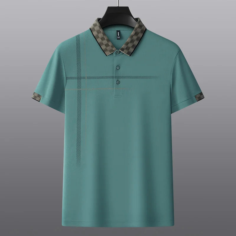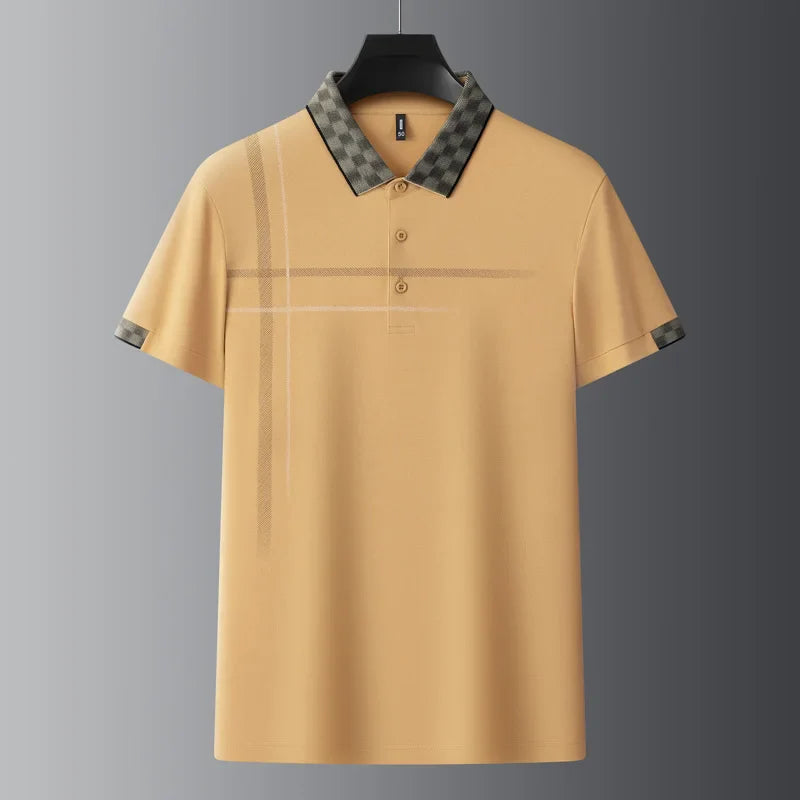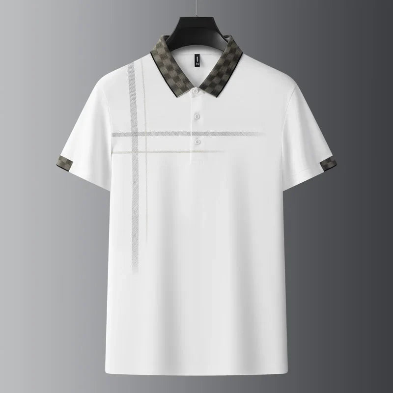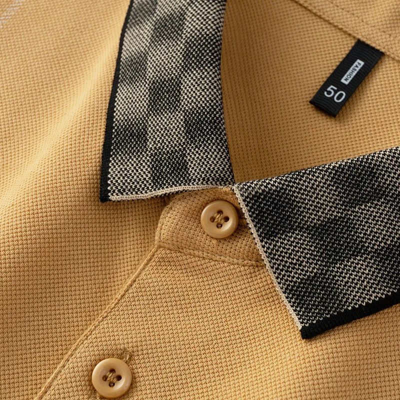 Make a bold yet classy statement with this polo, featuring a distinctive checkered collar for a refined designer-inspired touch. Lightweight and breathable, it's crafted to deliver all-day comfort.