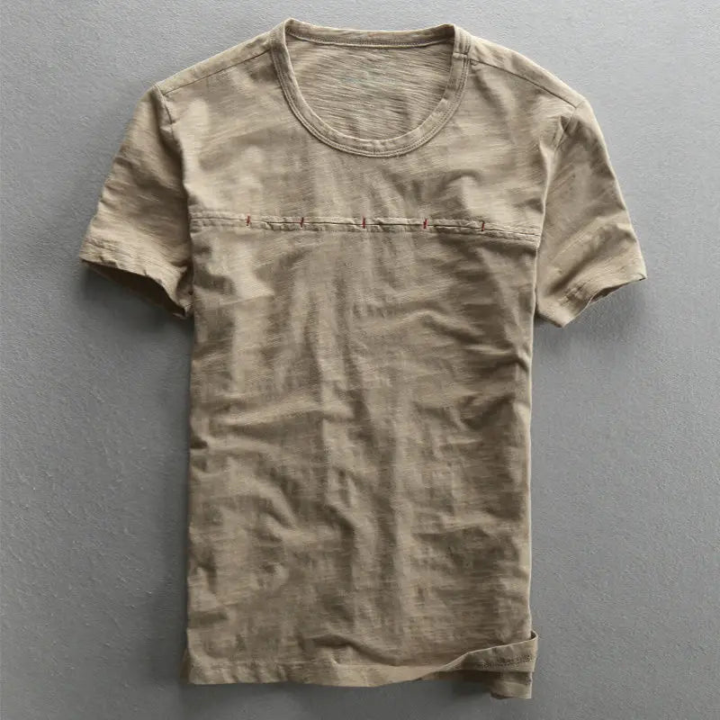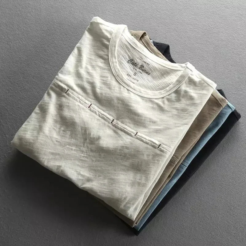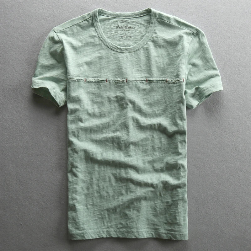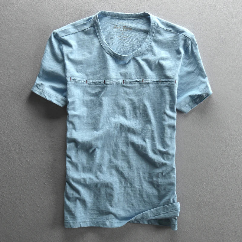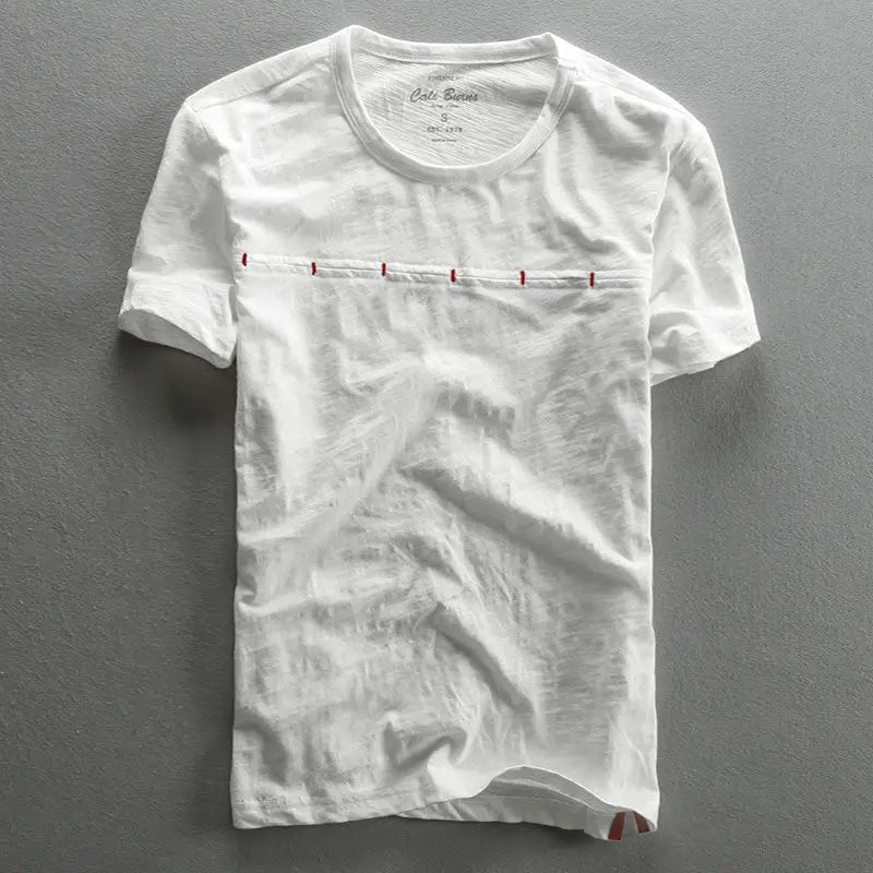 Breezy, minimal, and effortlessly cool — this 100% cotton tee blends laid-back luxury with everyday ease. The subtle stitch detail across the chest adds just the right amount of edge to a timeless classic.